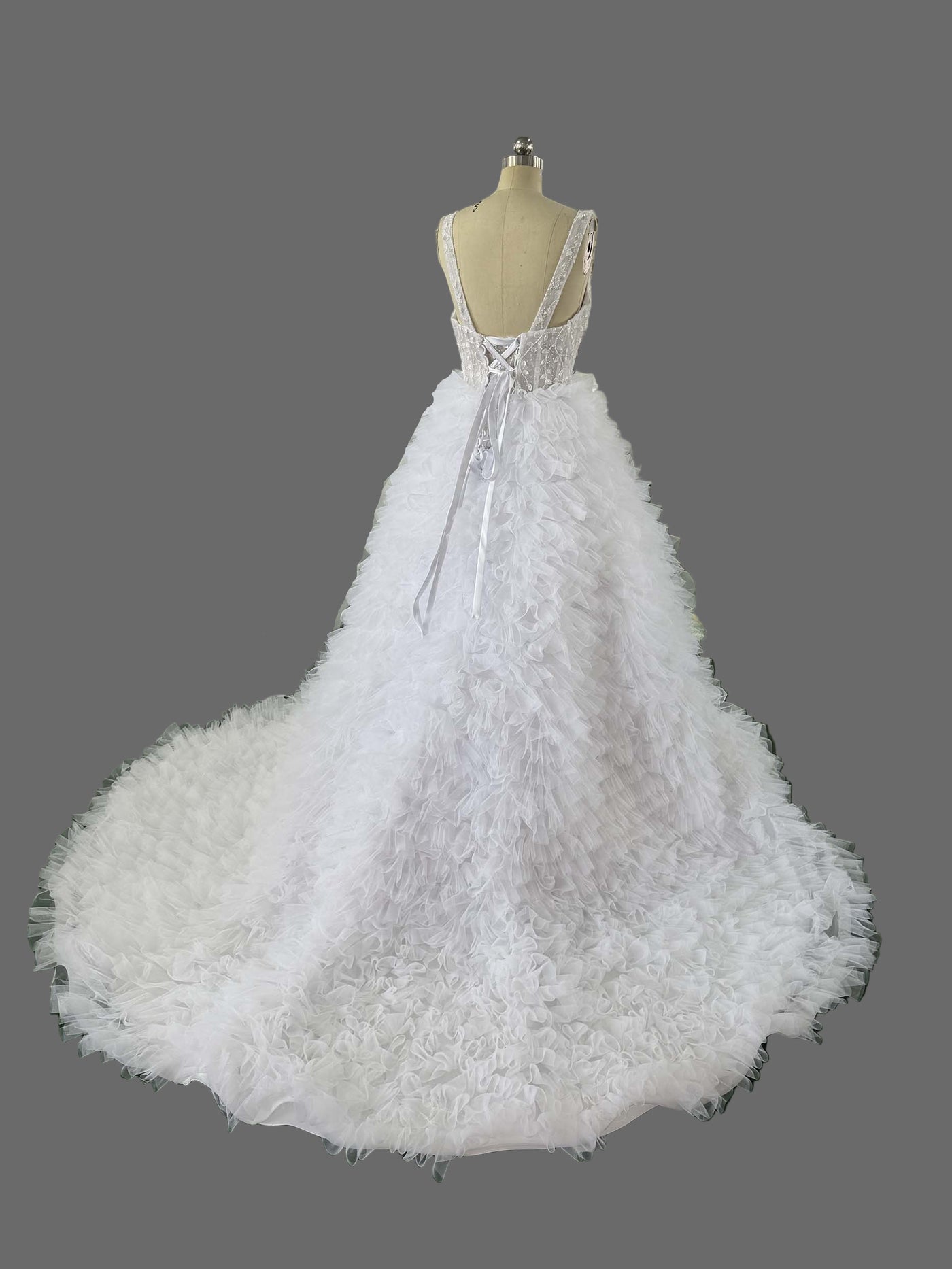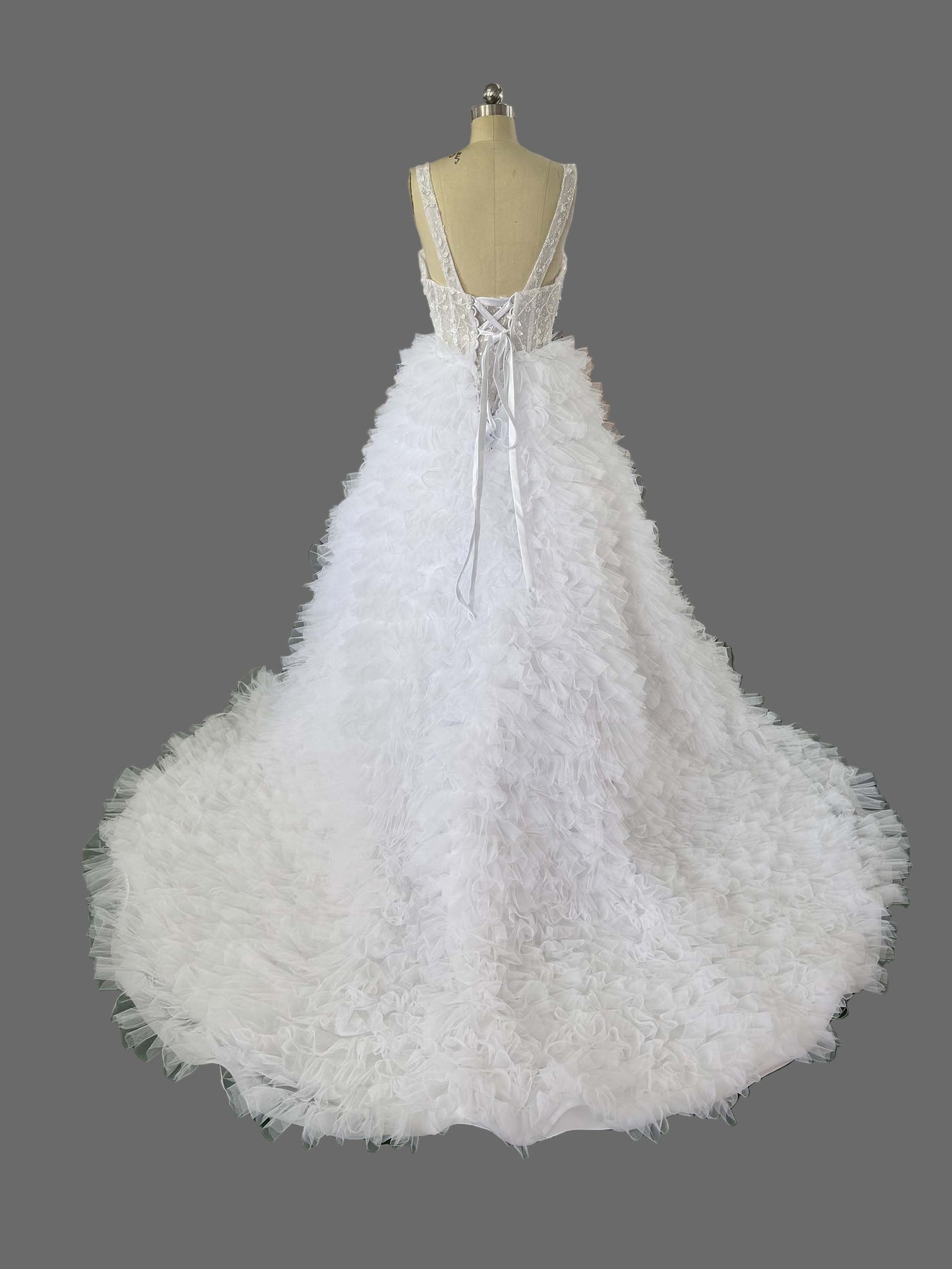 Embellishments: Crystal Beading, Ruffled Tulle Layers