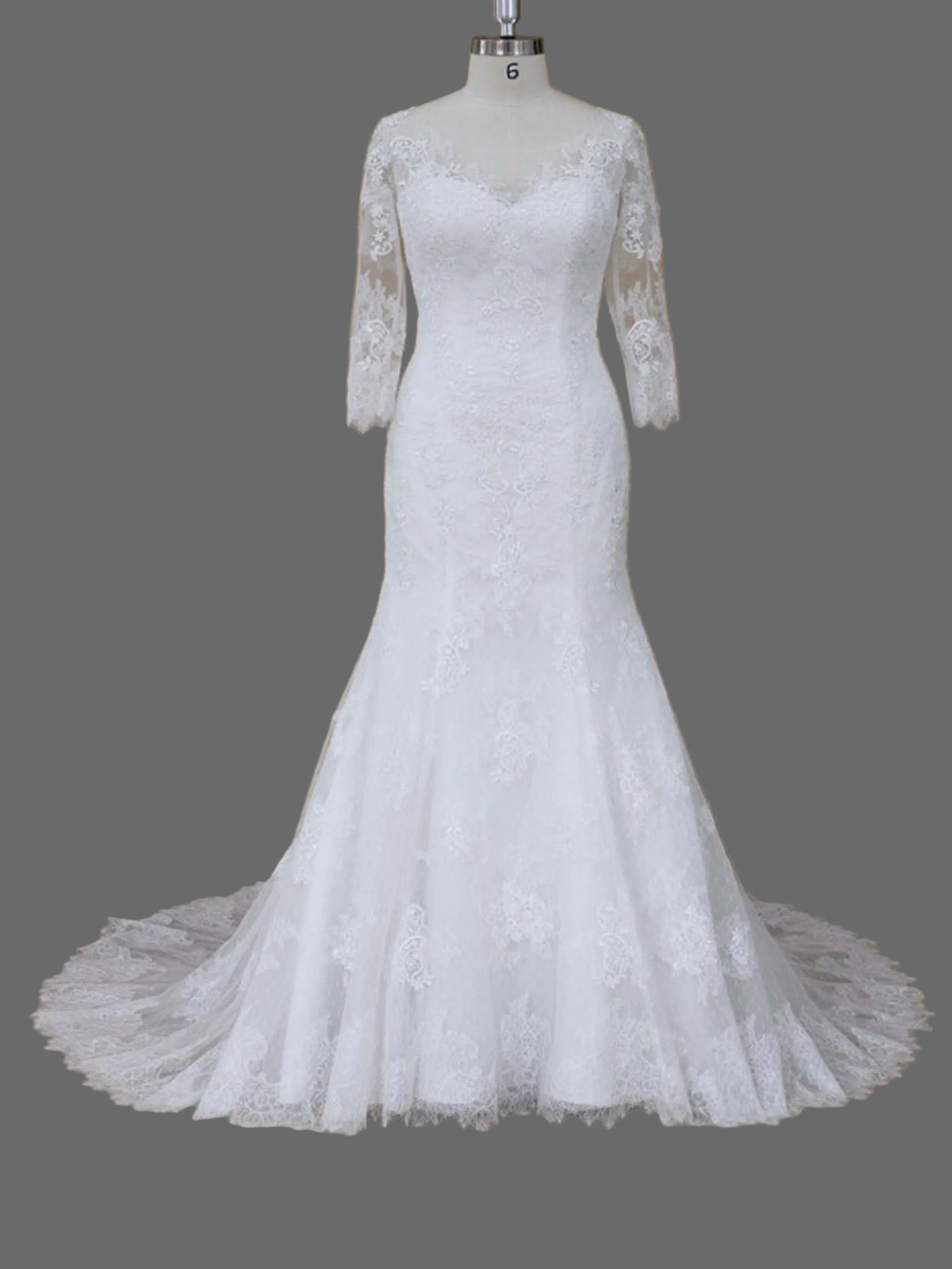 Embrace timeless elegance with this stunning mermaid wedding dress featuring delicate lace appliqués and romantic illusion sleeves. This sophisticated bridal gown combines classic silhouette with modern details for the bride who desires both grace and glamour.