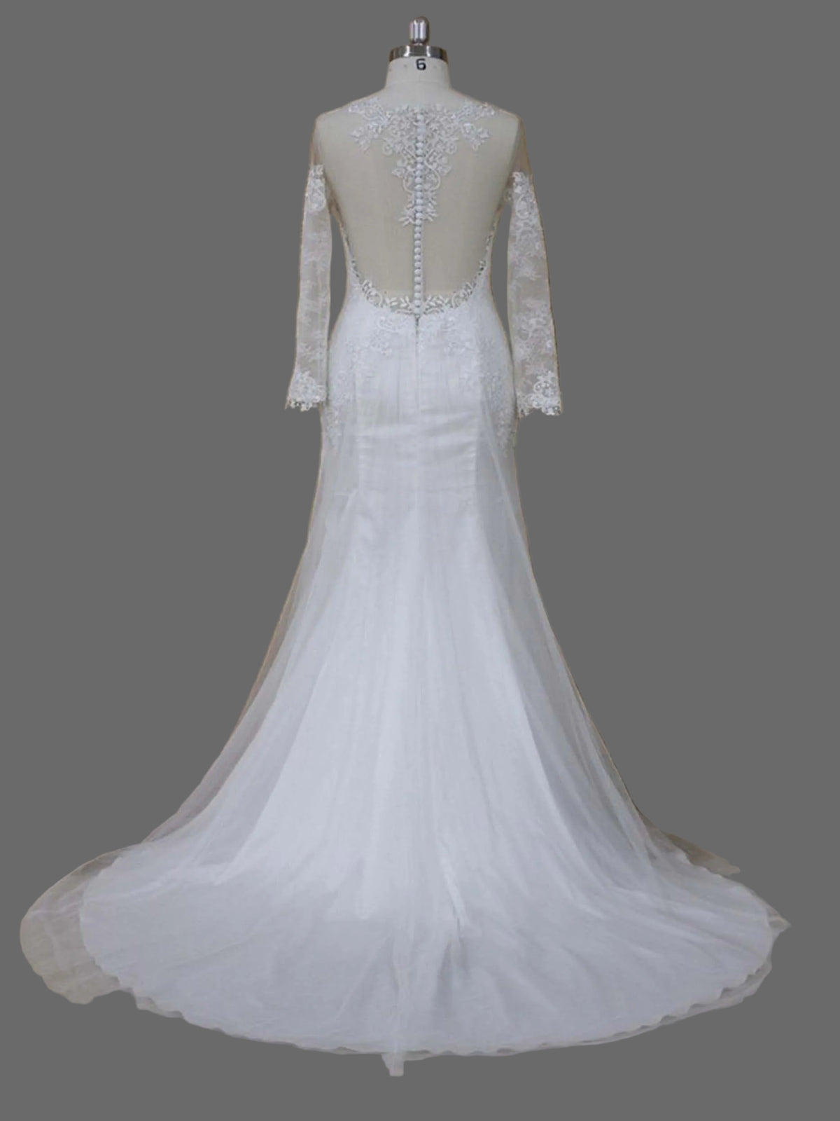 - Sheer long sleeves with scalloped lace trim