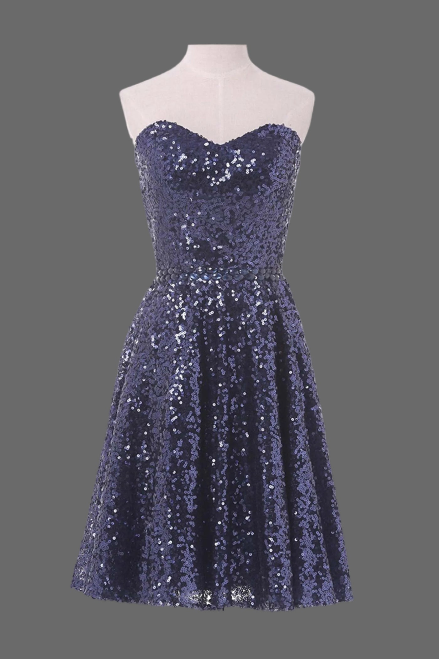 Make a dazzling entrance in this stunning navy blue sequin cocktail dress that perfectly combines glamorous sparkle with timeless elegance. This enchanting short dress features all-over sequin embellishments and delicate lace detailing, creating a show-stopping look for any special occasion.