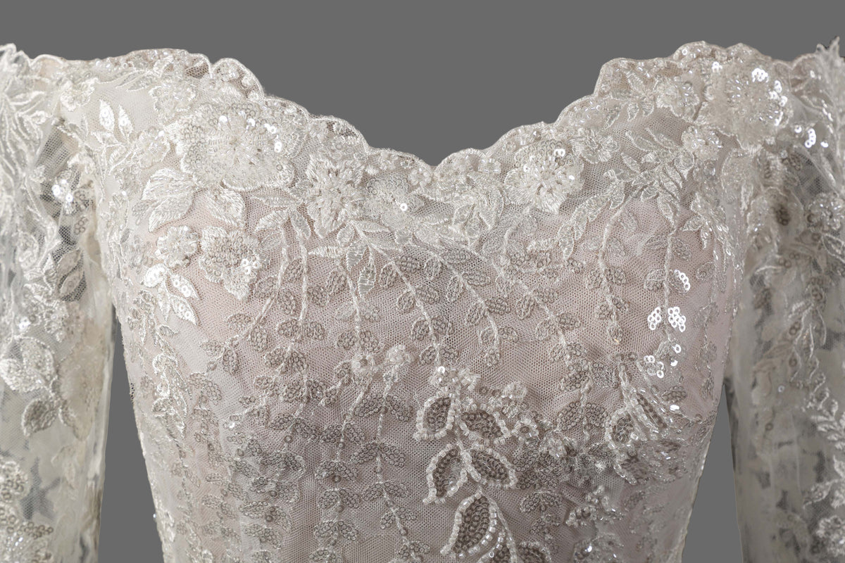 Off-Shoulder Lace Wedding Dress with Long Sleeves OWD-101